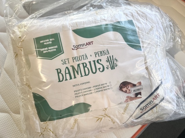 Am cumpărat acest set cu 2 perne și plapumă din bambus și sunt foarte încântată! Materialul e moale, respirabil și plăcut la atingere, iar designul cu bambus e elegant. Pernele au susținerea perfectă și nu mai am dureri de gât, iar plapuma e ușoară și călduroasă – ideală pentru nopțile mai răcoroase.